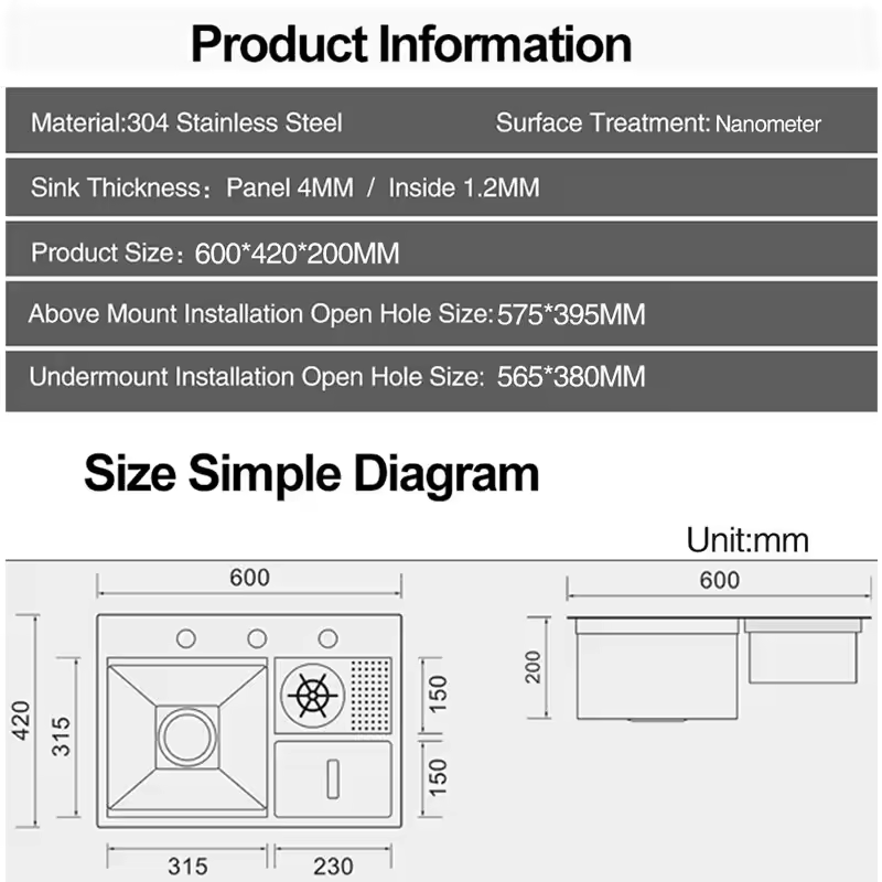 JOMOLA provide 3 different tech-made types kitchen sink for customization solution, there are stainless steel sink and granite quartz sink,