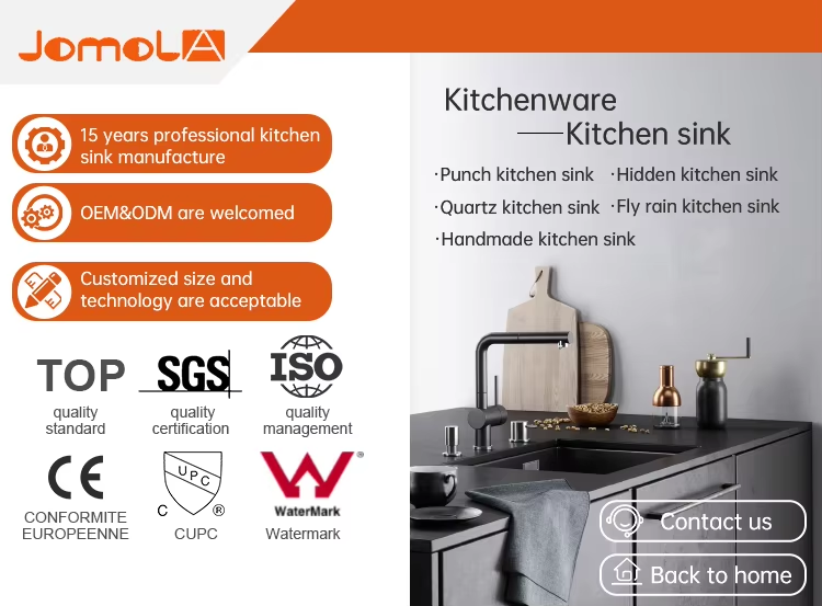 JOMOLA provide 3 different tech-made types kitchen sink for customization solution, there are stainless steel sink and granite quartz sink,