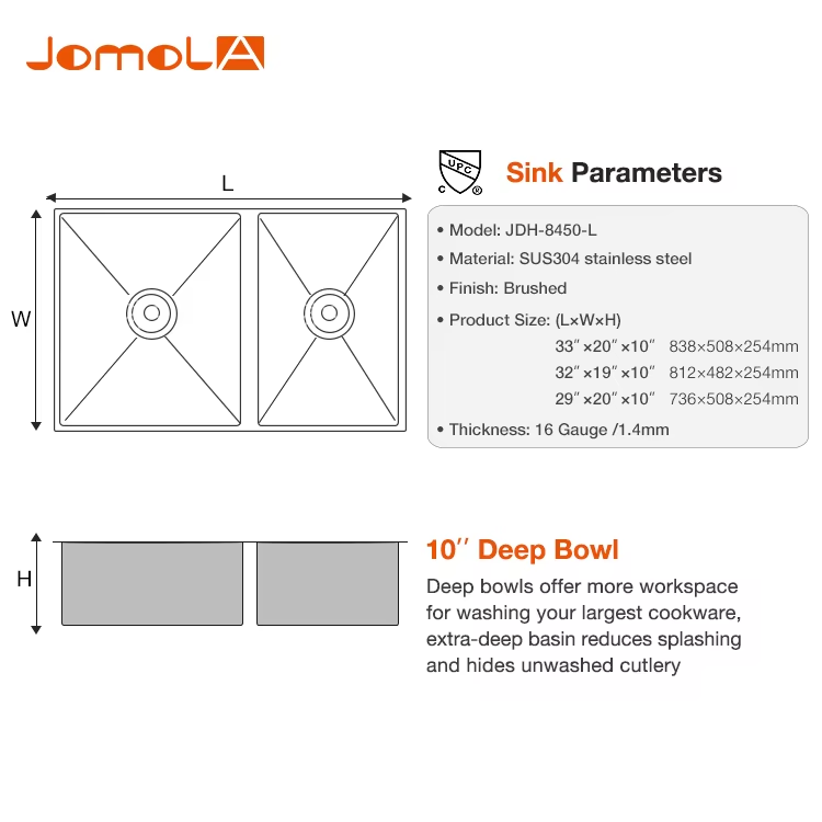 JOMOLA provide 3 different tech-made types kitchen sink for customization solution, there are stainless steel sink and granite quartz sink,