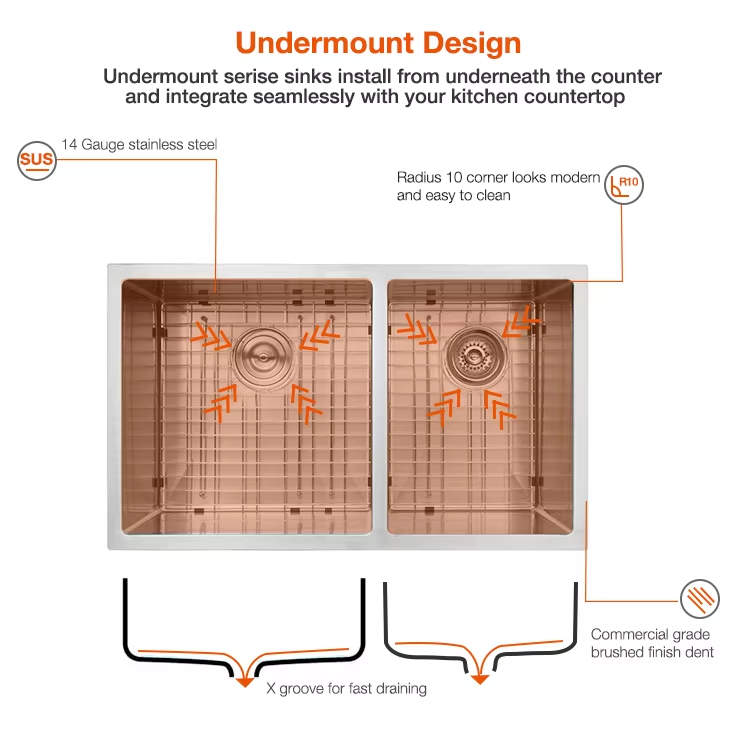 undermount Stainless Steel Double Bowl Kitchen Sink