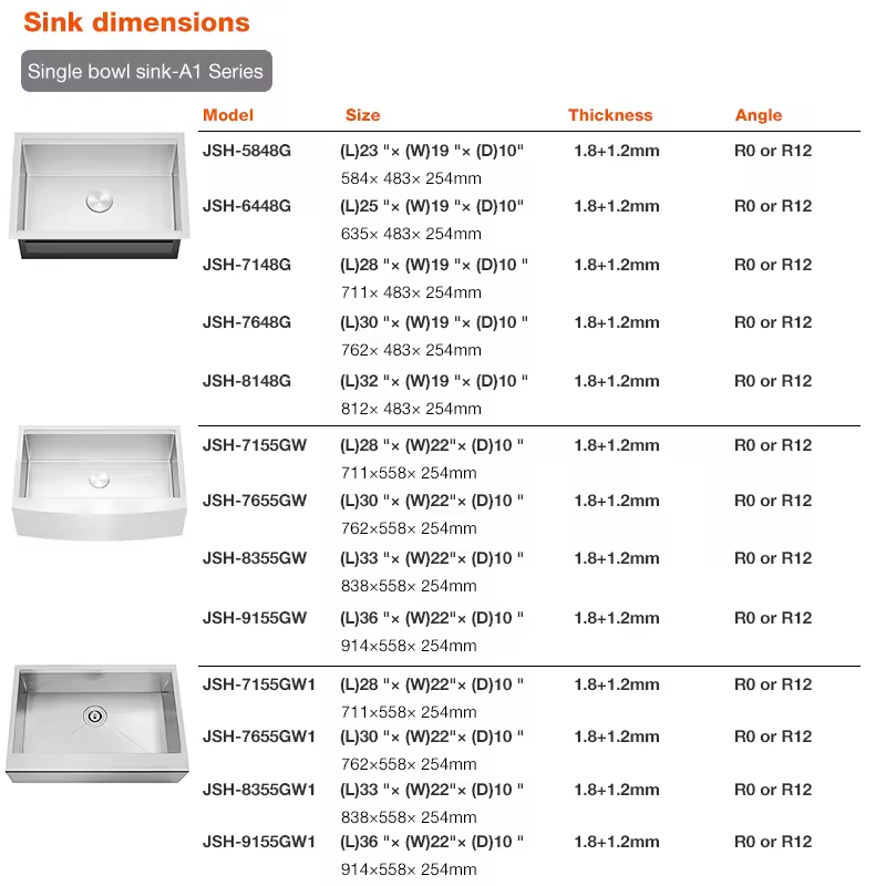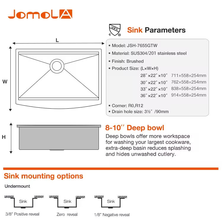 JOMOLA provide 3 different tech-made types kitchen sink for customization solution, there are stainless steel sink and granite quartz sink,